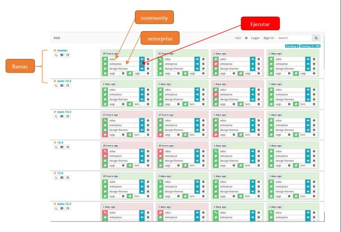 La plataforma Runbot está disponible en el enlace http://runbot.odoo.com
